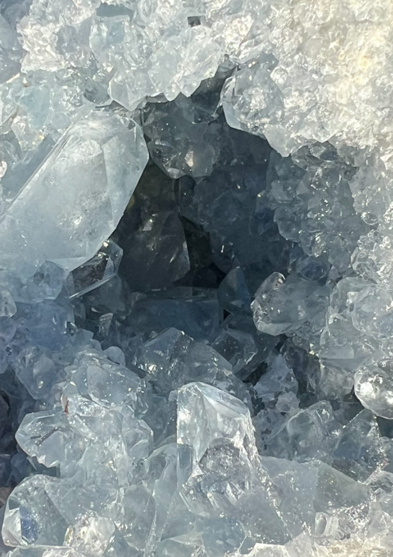 Celestite is the celestial stone. It fosters divine connection, soothing the spirit and opening pathways to angelic guidance and spiritual growth.