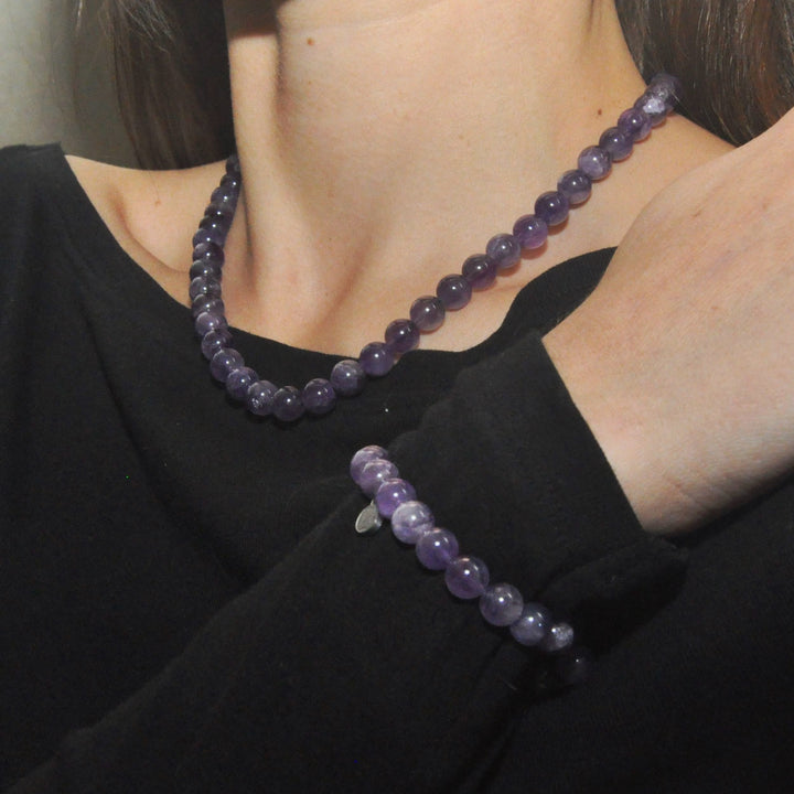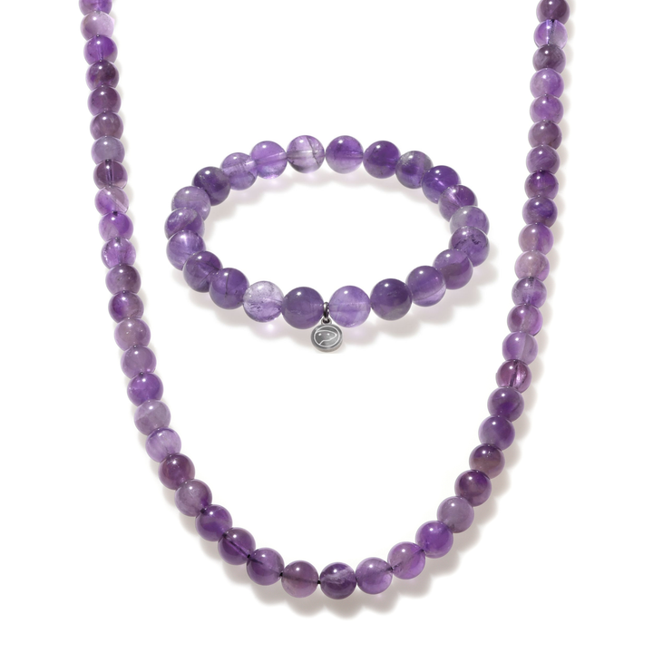 Meet the Amethyst Beaded Duo — a delicate two-piece set designed to connect you with the soothing and protective energy of Amethyst. This set includes a beaded necklace and a matching bracelet, each crafted from AAA-grade Amethyst gemstones and finished with our signature otter medallion.