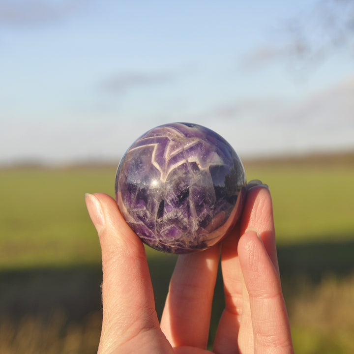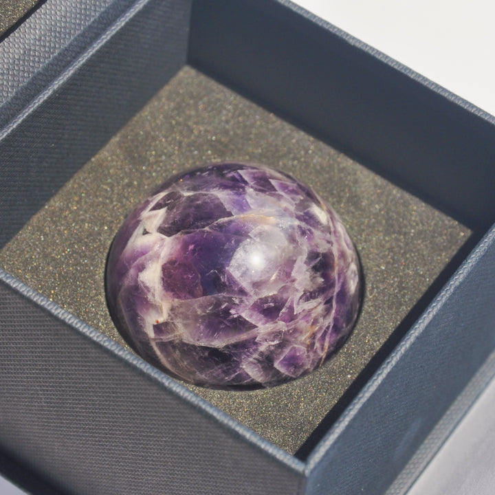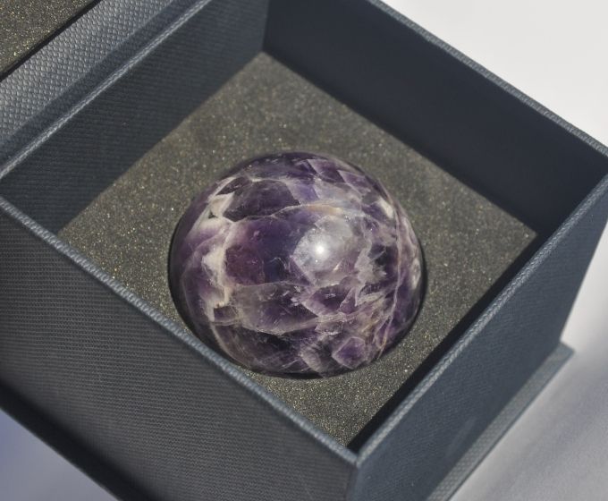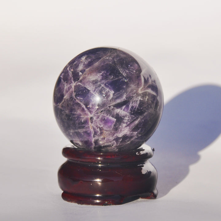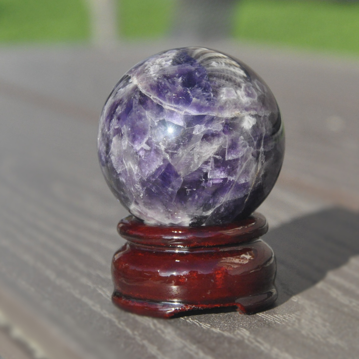 Amethyst Sphere made with AAA grade natural crystal. Amethyst is the peace-of-mind stone. Known for its soothing energy, it is associated with relaxation and stress relief.