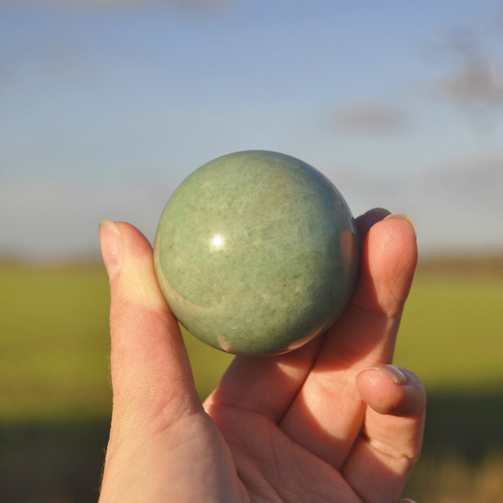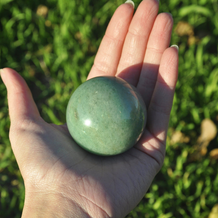 Aventurine Sphere made with AAA grade natural crystal. Aventurine is the optimism stone. It attracts prosperity and luck while encouraging self-care and confident leadership.