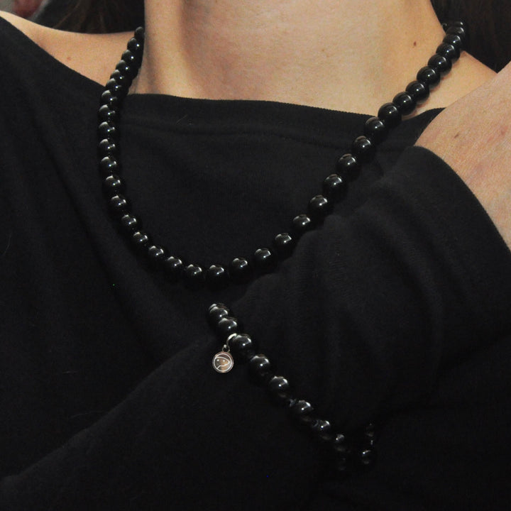 Meet the Black Tourmaline Beaded Duo — a delicate two-piece set designed to connect you with the grounding and protective energy of Black Tourmaline. This set includes a beaded necklace and a matching bracelet, each crafted from AAA-grade Black Tourmaline gemstones and featuring our signature otter medallion.