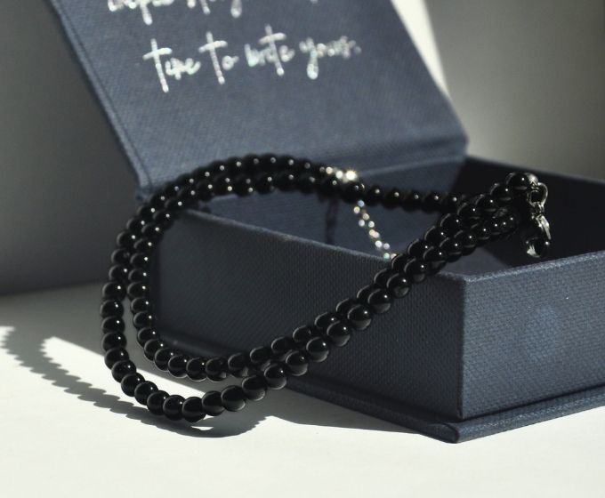 Beaded Black Tourmaline Necklace made with AAA grade natural crystal, featuring our signature otter medallion. Black Tourmaline is the protection stone. Its grounding energy shields against negativity and fosters confidence, clarity, and spiritual strength.