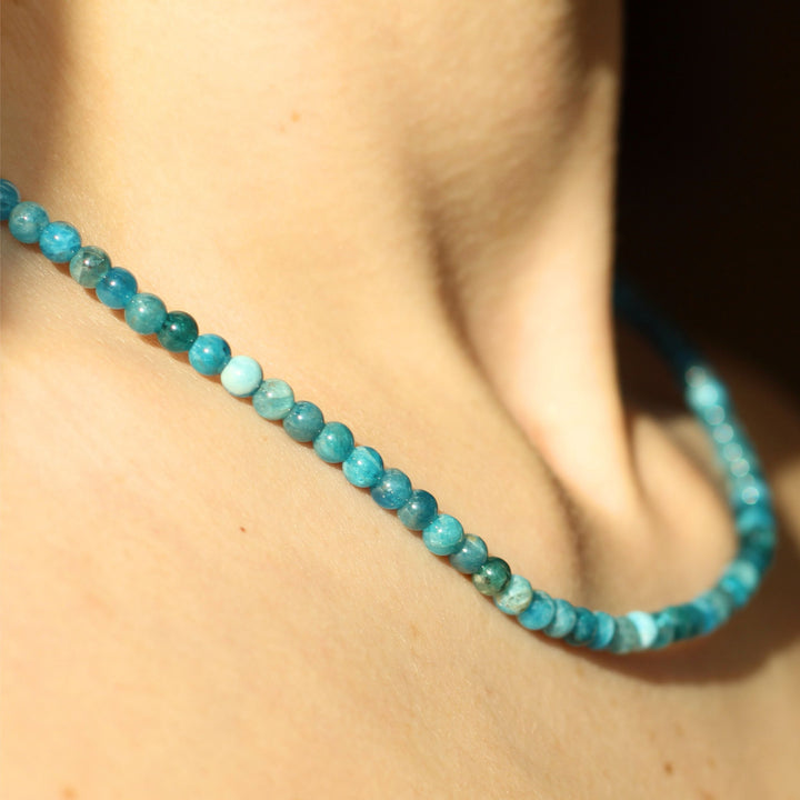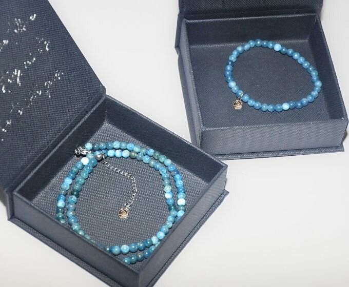 Meet the Blue Apatite Beaded Duo — a delicate two-piece set designed to connect you with the inspiring and motivating energy of Blue Apatite. This set includes a beaded necklace and a matching bracelet, each crafted from AA-grade Blue Apatite gemstones and featuring our signature otter medallion.