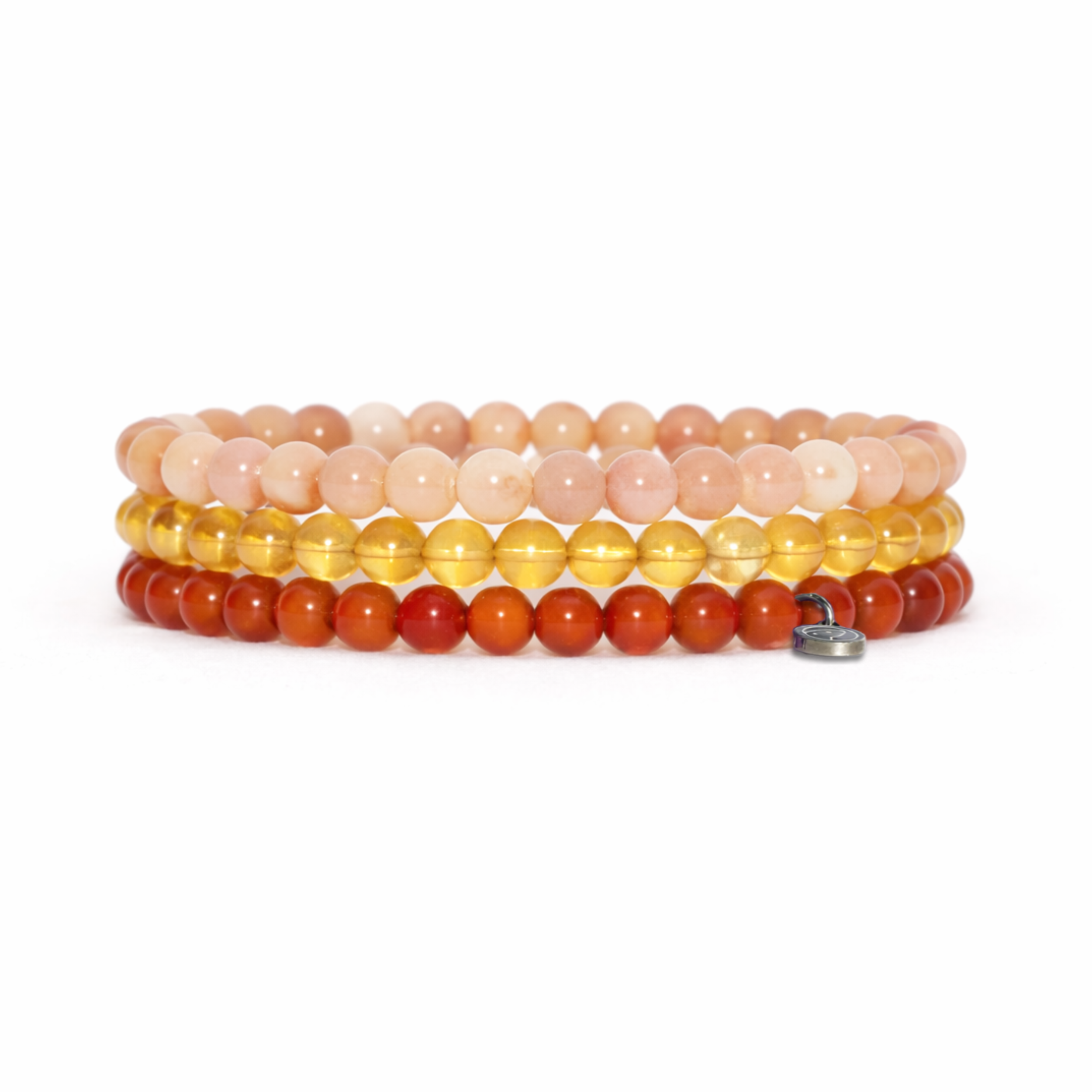 Beaded Carnelian Bracelet made with AAA grade natural crystal, featuring our signature otter medallion. Carnelian is the vitality stone. It ignites passion and creativity, boosting energy and empowering self-expression and personal power.