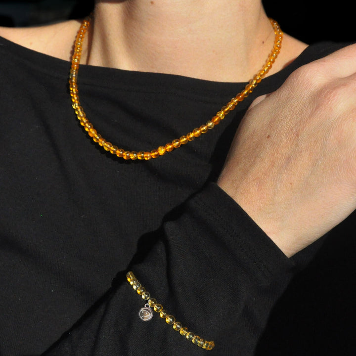 Meet the Citrine Beaded Duo — a delicate two-piece set designed to connect you with the joyful and empowering energy of Citrine. This set includes a beaded necklace and a matching bracelet, each crafted from AA-grade Citrine gemstones and featuring our signature otter medallion.