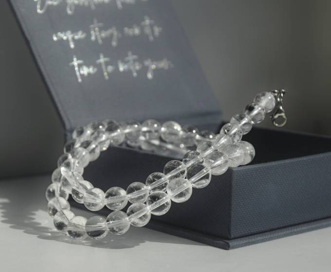 Beaded Clear Quartz Necklace made with AAA grade natural crystal, featuring our signature otter medallion. Clear Quartz is the Master Healer stone. It amplifies energy, clarity, and intention, supporting balance and powerful transformation.