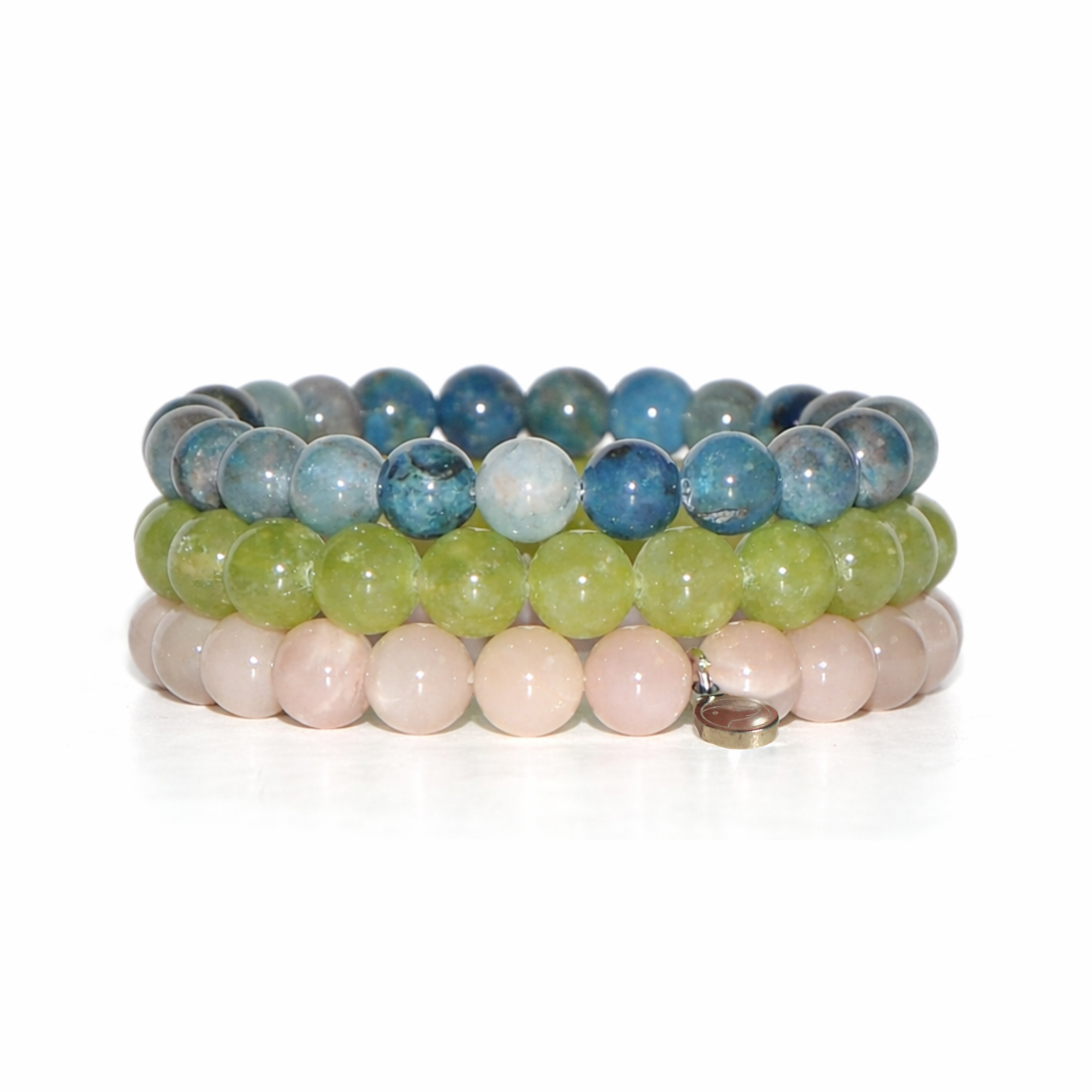 Made to strengthen self-belief and positivity, this set blends courage with joy. Sunstone awakens vitality and optimism, Peridot invites abundance and heart-centered growth, while Blue Apatite inspires confidence and clear expression.