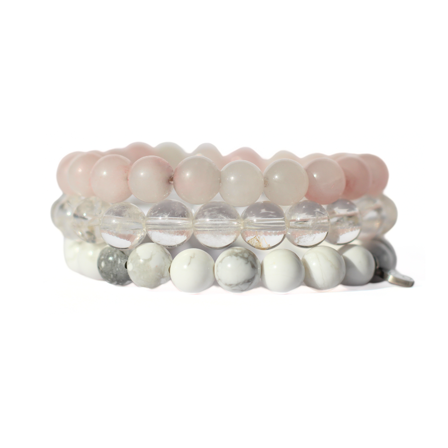 Designed to strengthen bonds and bring peace, this set carries warmth and harmony. Rhodonite nurtures compassion and forgiveness, Celestite inspires calm and spiritual connection, while Howlite encourages patience and understanding.