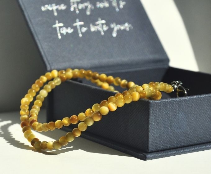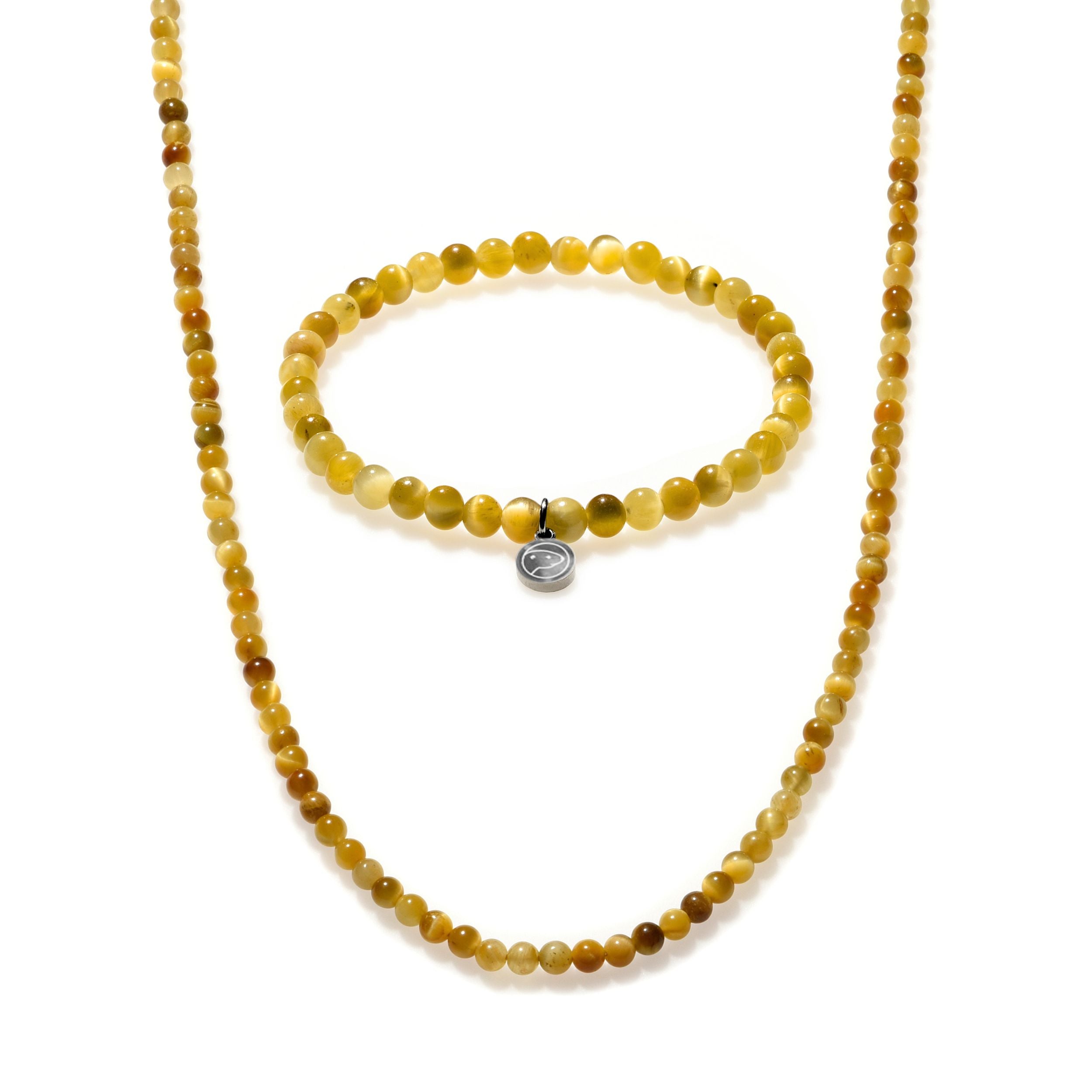 Beaded Golden Tiger Eye Necklace made with AAA grade natural crystal, featuring our signature otter medallion. Golden Tiger Eye is the confidence stone. It amplifies courage, personal power, and clarity, supporting manifestation and self-assurance.