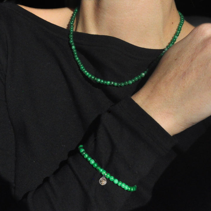Meet the Green Jade Beaded Duo — a delicate two-piece set designed to connect you with the harmonizing and prosperity-attracting energy of Green Jade. This set includes a beaded necklace and a matching bracelet, each crafted from AA-grade Green Jade gemstones and featuring our signature otter medallion.