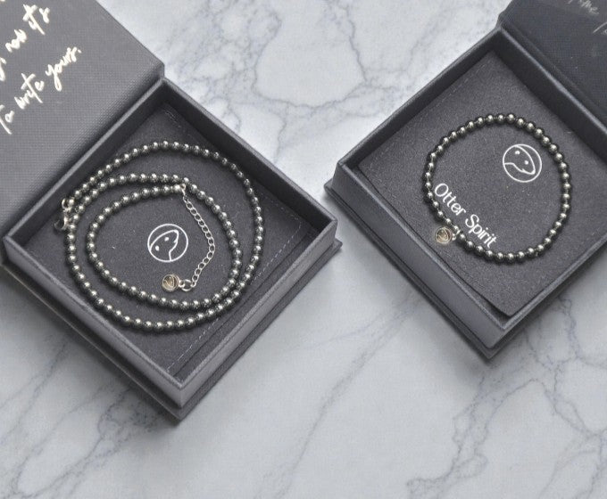 Meet the Hematite Beaded Duo — a grounding two-piece set designed to protect your energy, strengthen stability, and sharpen focus. This set includes a beaded necklace and a matching bracelet, each handcrafted from AAA-grade Hematite gemstones and adorned with our signature otter medallion.