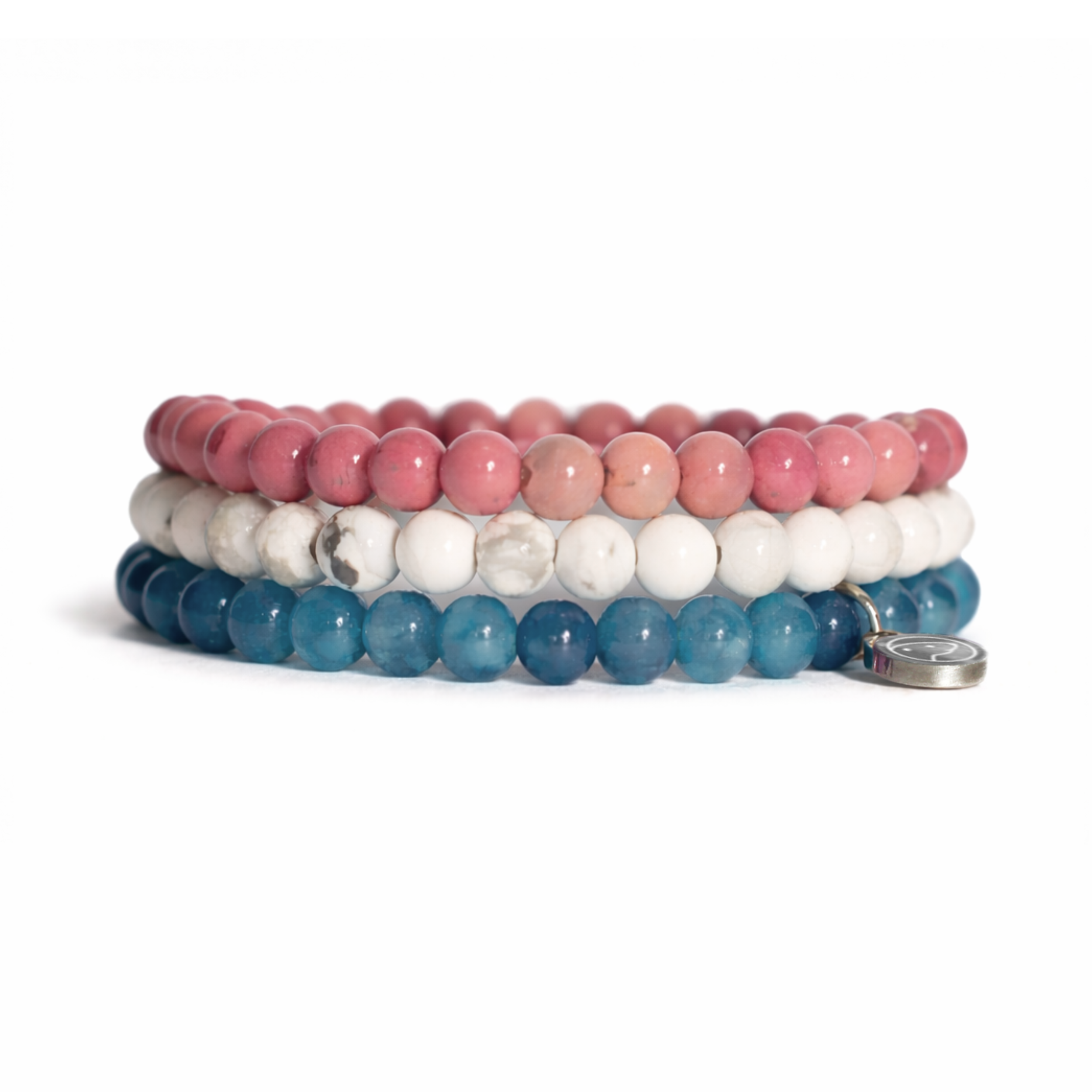 Beaded Howlite Bracelet made with AAA grade natural crystal, featuring our signature otter medallion. Howlite is the soothing stone. It promotes relaxation, patience, and emotional healing, easing stress, anxiety, and insomnia.