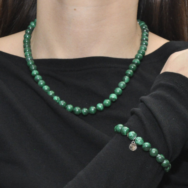 Meet the Malachite Beaded Duo — a bold two-piece set crafted to empower transformation, protection, and emotional renewal. This set includes a beaded necklace and a matching bracelet, each handcrafted from AAA-grade Malachite gemstones and adorned with our signature otter medallion.