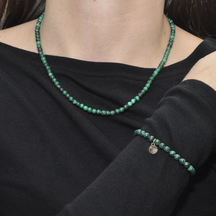 Meet the Malachite Beaded Duo — a bold two-piece set crafted to empower transformation, protection, and emotional renewal. This set includes a beaded necklace and a matching bracelet, each handcrafted from AAA-grade Malachite gemstones and adorned with our signature otter medallion.