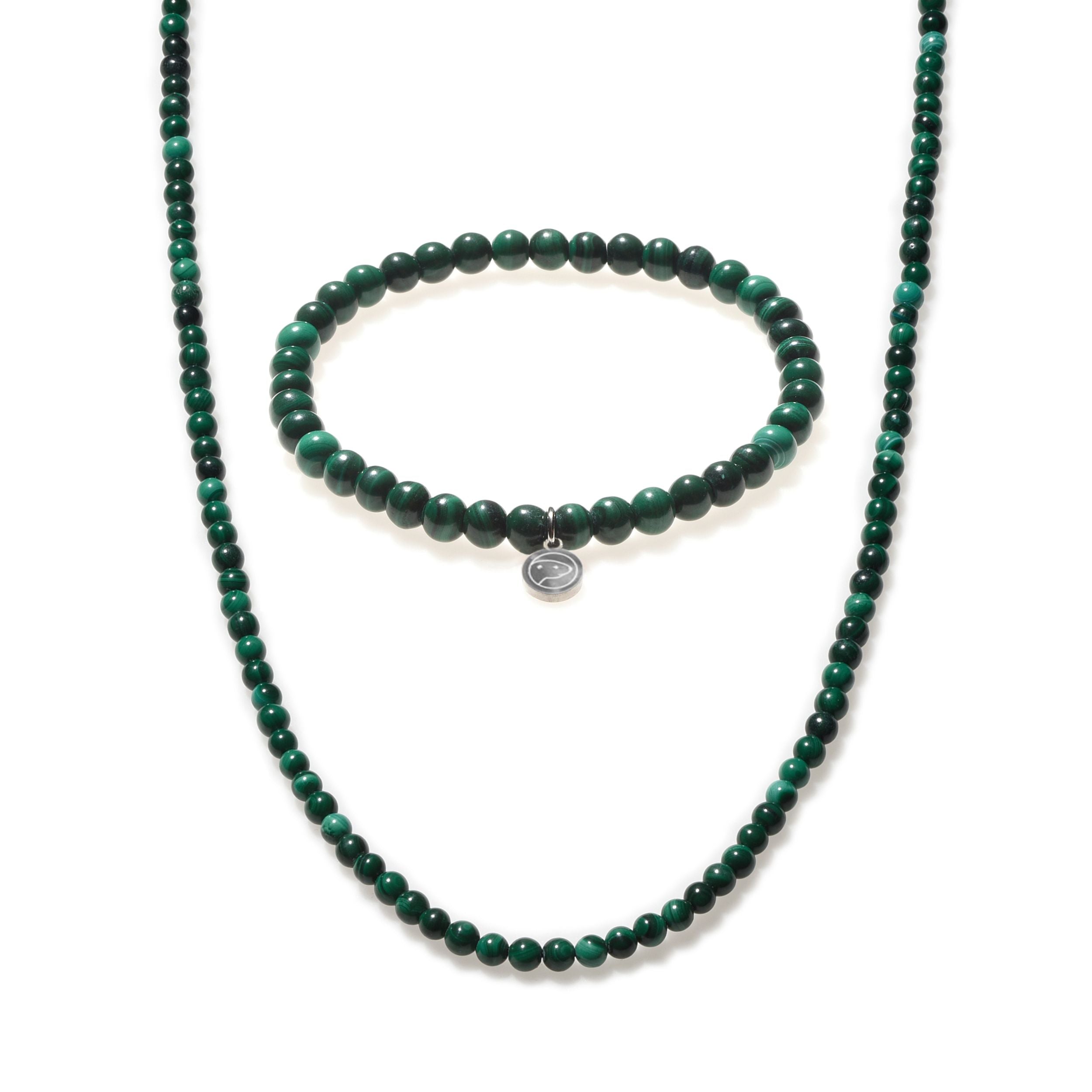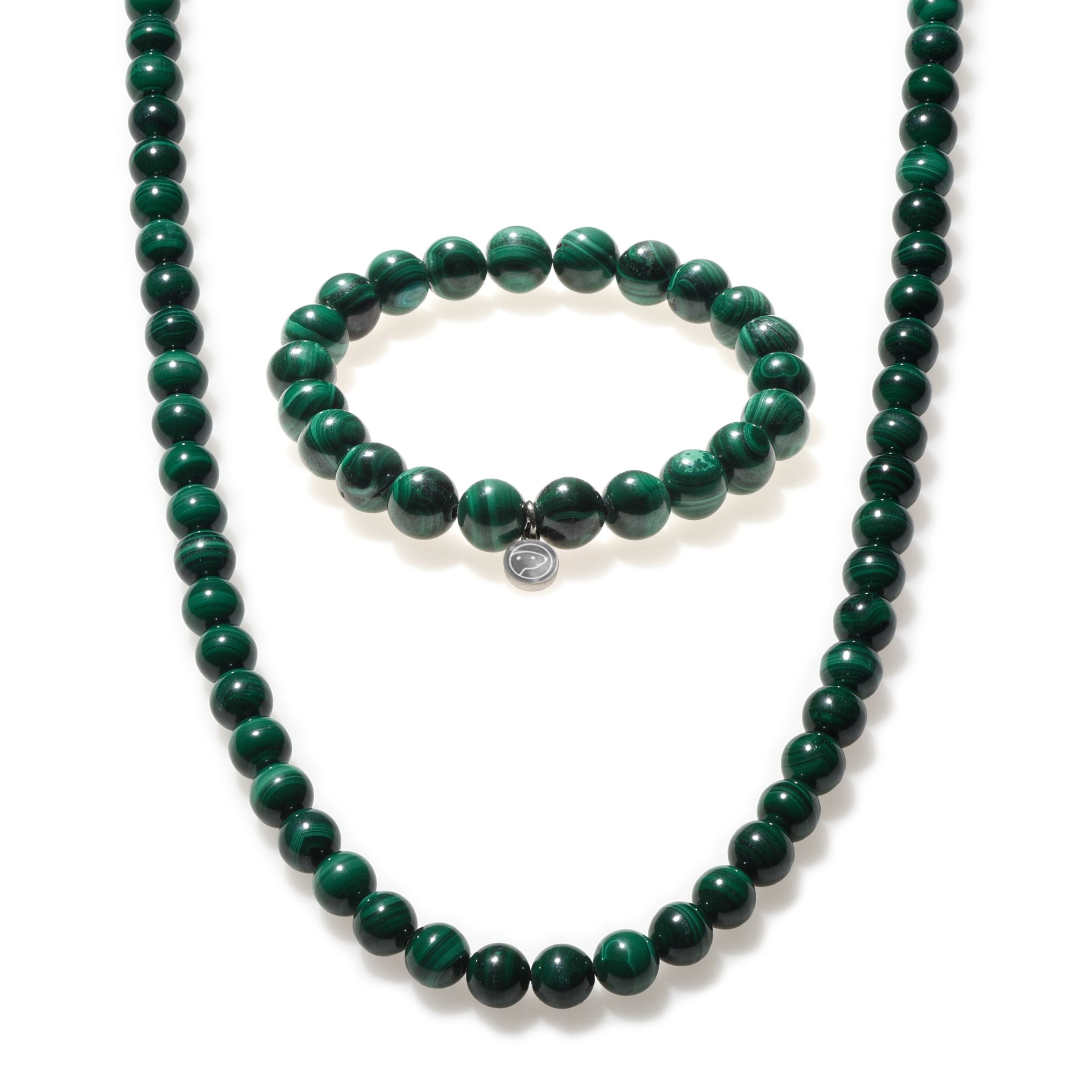Beaded Malachite Necklace made with AAA grade natural crystal, featuring our signature otter medallion. Malachite is the metamorphosis stone. It radiates growth and transformation, inviting renewal, energy, and positive change into your life.
