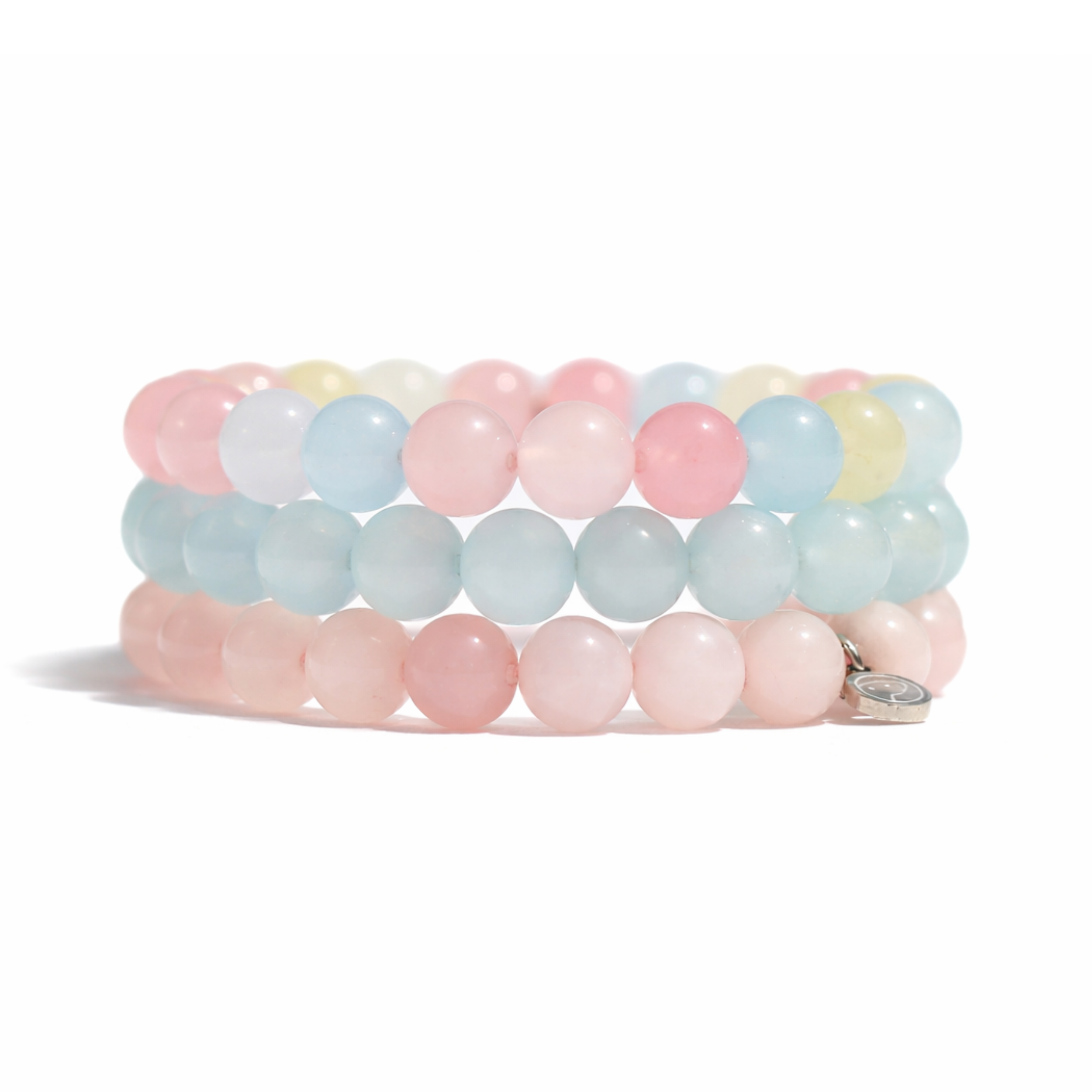 Beaded Morganite Bracelet made with AA grade natural crystal, featuring our signature otter medallion. Morganite is the compassion stone. It nurtures the heart, attracts emotional healing, and fills the soul with divine love.