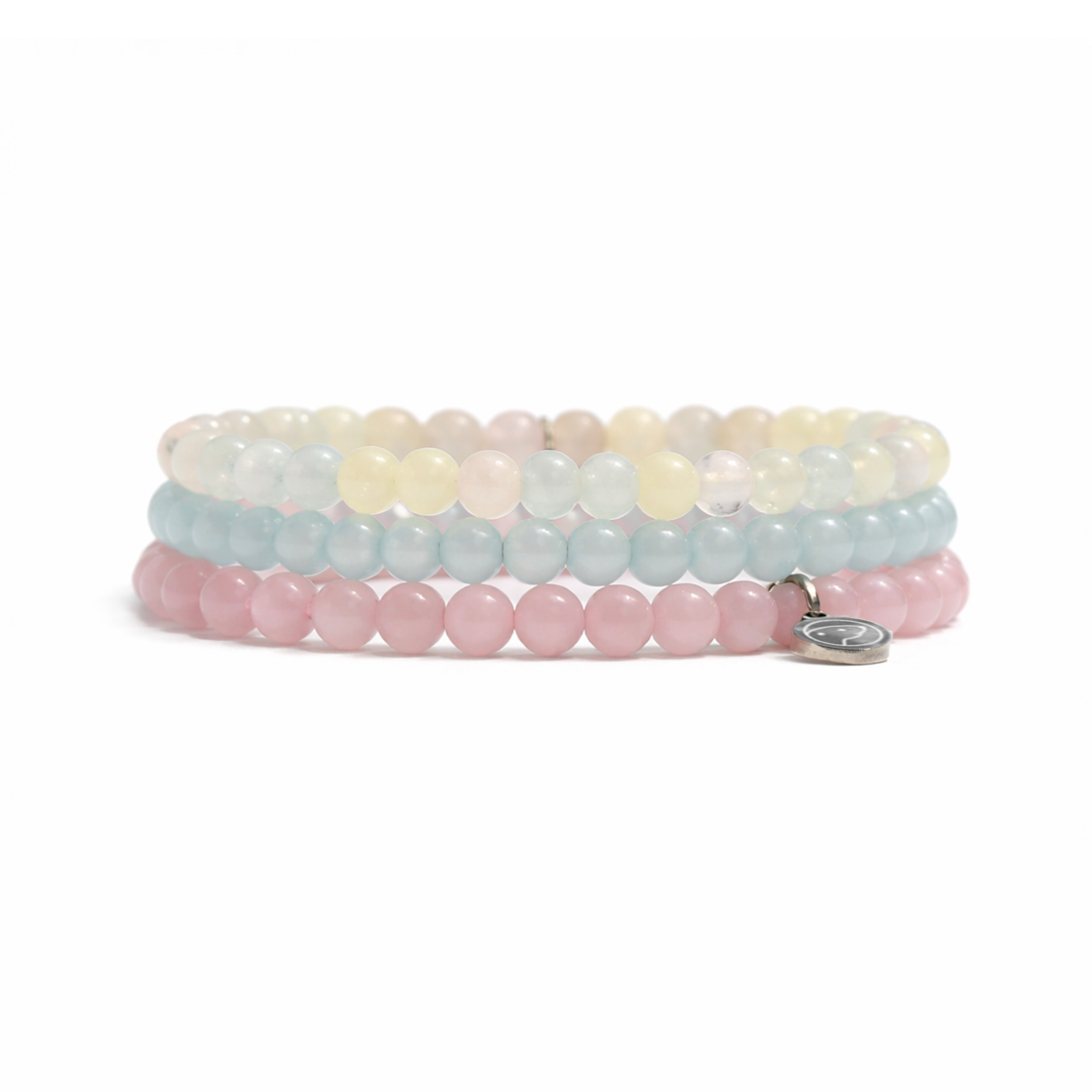 Beaded Morganite Bracelet made with AA grade natural crystal, featuring our signature otter medallion. Morganite is the compassion stone. It nurtures the heart, attracts emotional healing, and fills the soul with divine love.