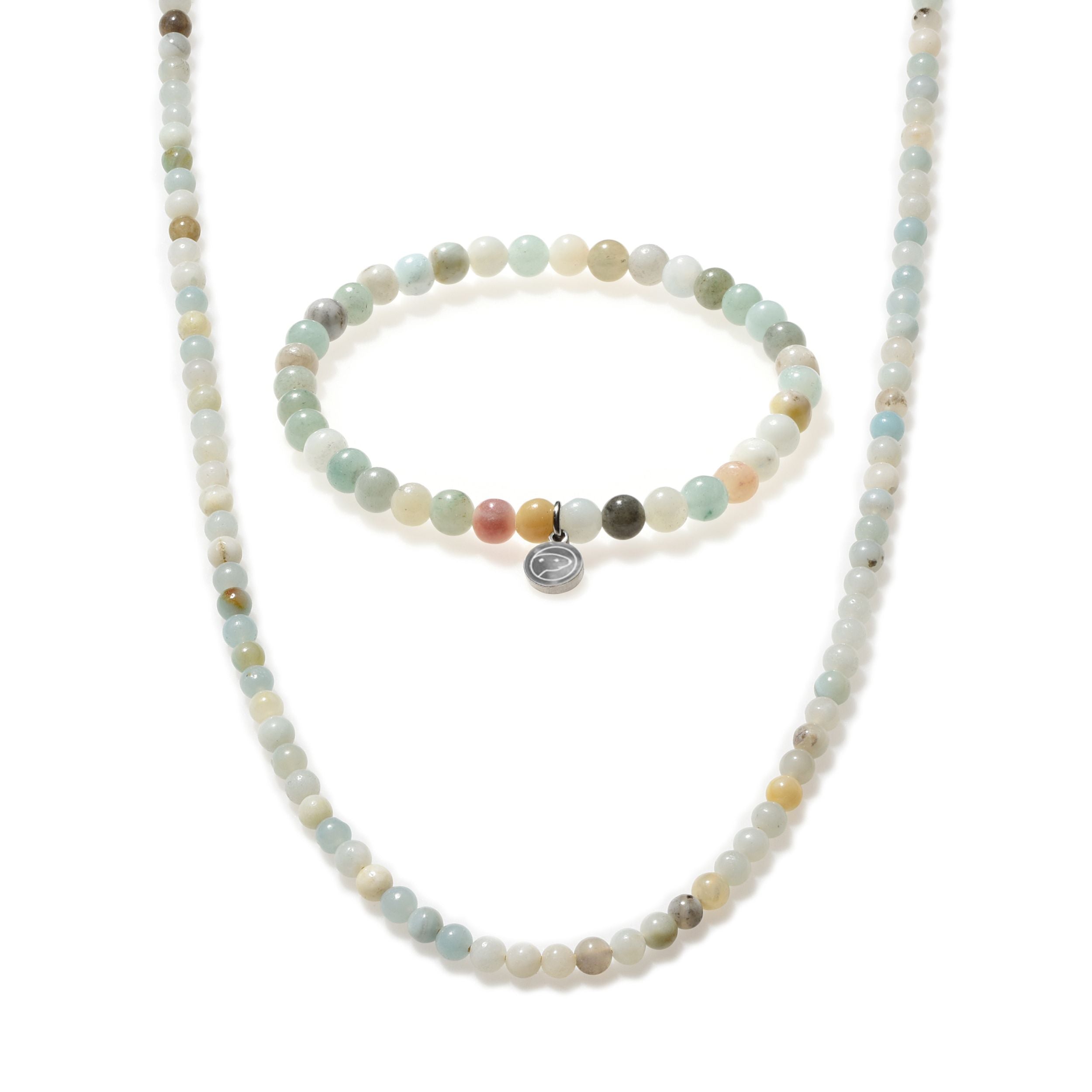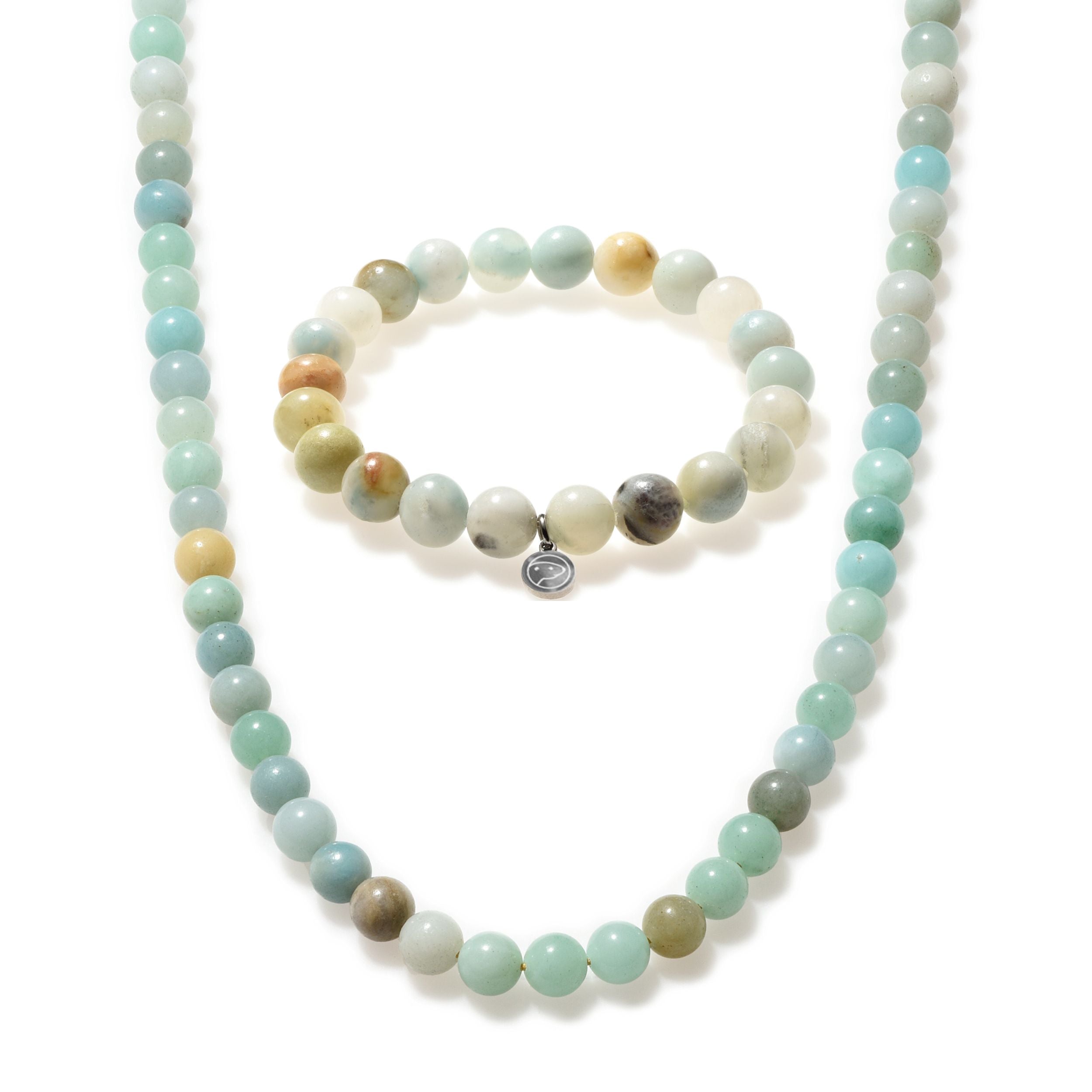 Beaded Multi-Amazonite Bracelet made with AA grade natural crystal, featuring our signature otter medallion. Multi-Amazonite is the hopeful stone. It fosters harmony and emotional balance while enhancing intuition, communication, and inner strength.