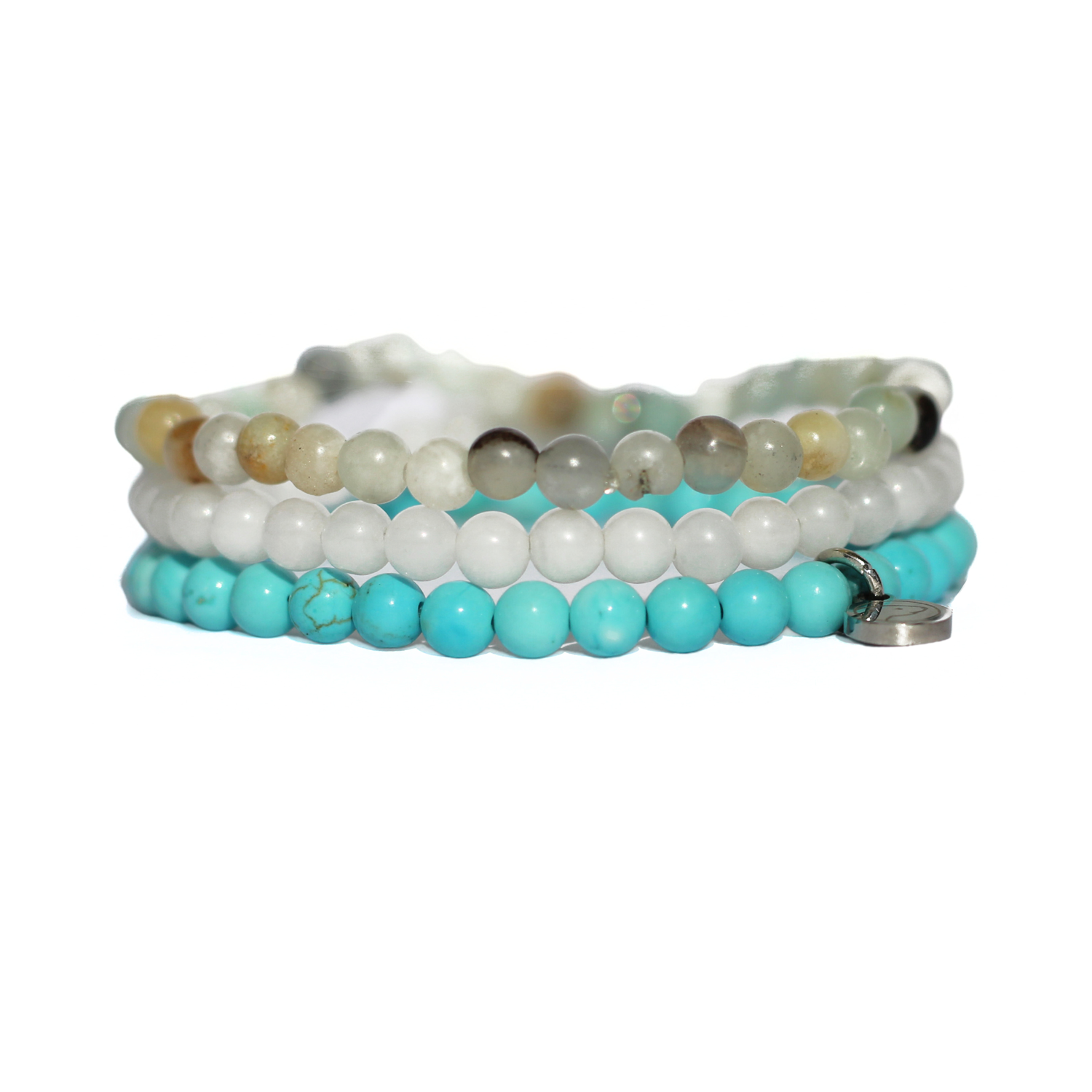 Beaded Multi-Amazonite Bracelet made with AA grade natural crystal, featuring our signature otter medallion. Multi-Amazonite is the hopeful stone. It fosters harmony and emotional balance while enhancing intuition, communication, and inner strength.