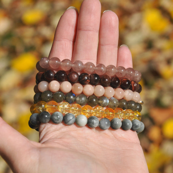 Designed to honor the spirit of thankfulness and renewal, this set balances warmth with intuition. Sunstone sparks joy, Strawberry Quartz nurtures love, and Red Tiger Eye fuels motivation. Hawk's Eye brings clarity, Citrine attracts abundance, and Labradorite awakens transformation—guiding you through the season with grace and light.