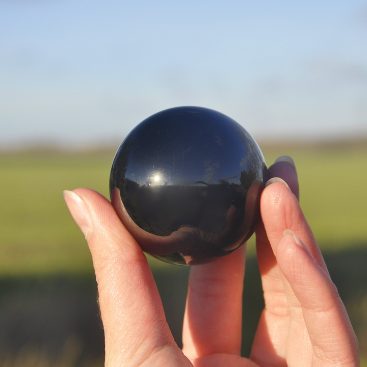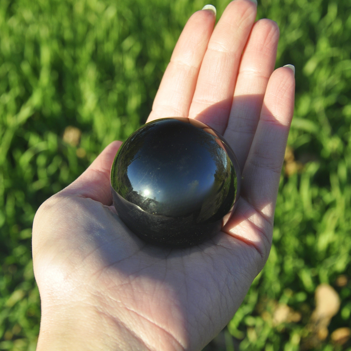 Obsidian Sphere made with AAA grade natural crystal. Obsidian is the protection stone. It grounds your energy, shields against negativity, and guides you toward clarity and self-empowerment.