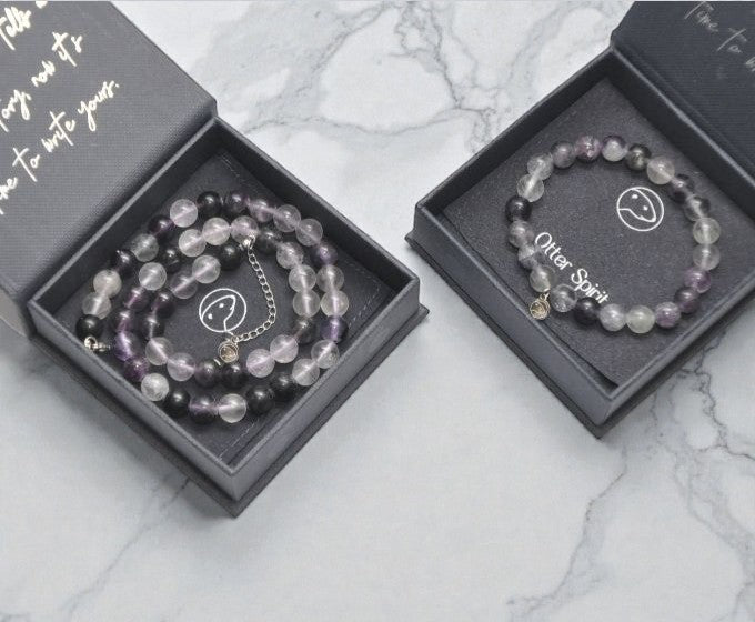 Meet the Purple Fluorite Beaded Duo — a calming two-piece set designed to clear the mind, strengthen intuition, and restore energetic balance. This set includes a beaded necklace and a matching bracelet, each handcrafted from AAA-grade Purple Fluorite gemstones and adorned with our signature otter medallion.