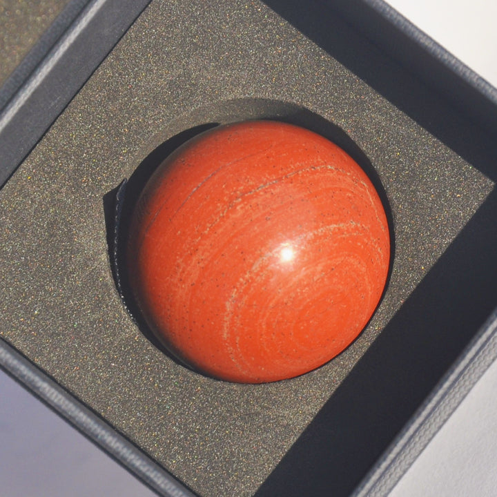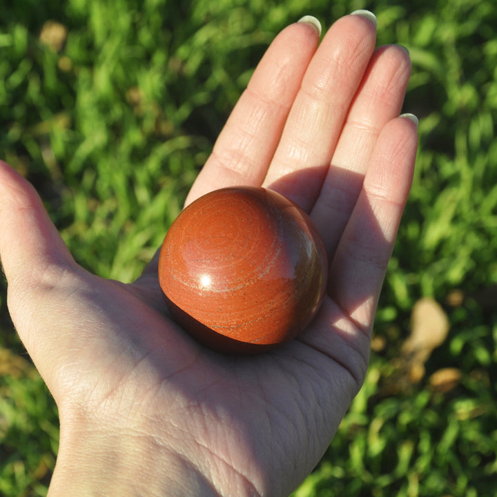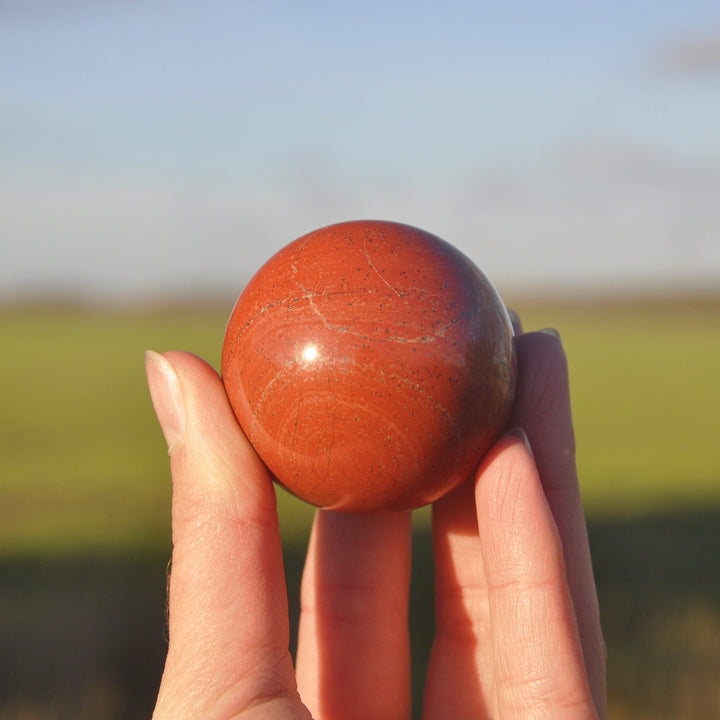 Red Jasper Sphere made with AAA grade natural crystal. Red Jasper is the endurance stone. It grounds and strengthens you, enhancing courage, vitality, self-confidence, and protection from negativity.
