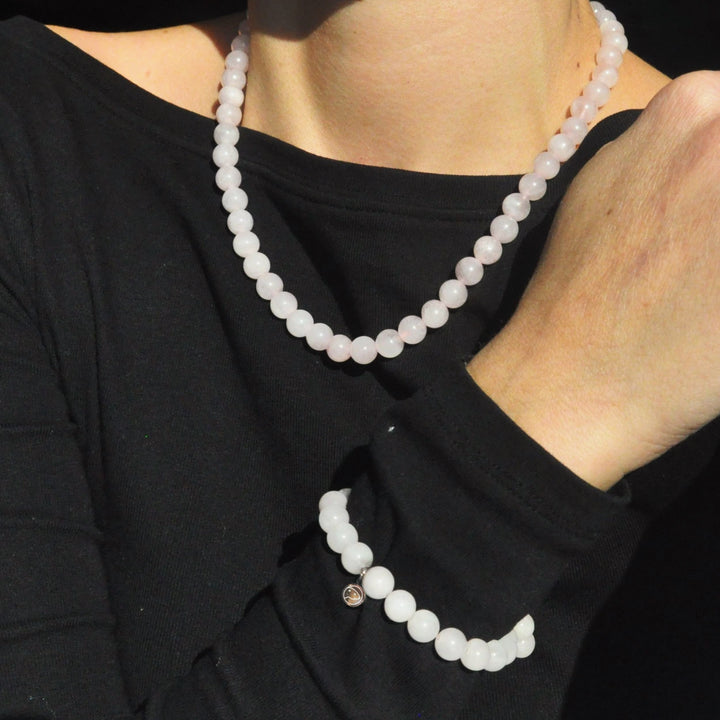 Meet the Rose Quartz Beaded Duo — a delicate two-piece set designed to connect you with the loving and heart-opening energy of Rose Quartz. This set includes a beaded necklace and a matching bracelet, each crafted from AAA-grade Rose Quartz gemstones and featuring our signature otter medallion.