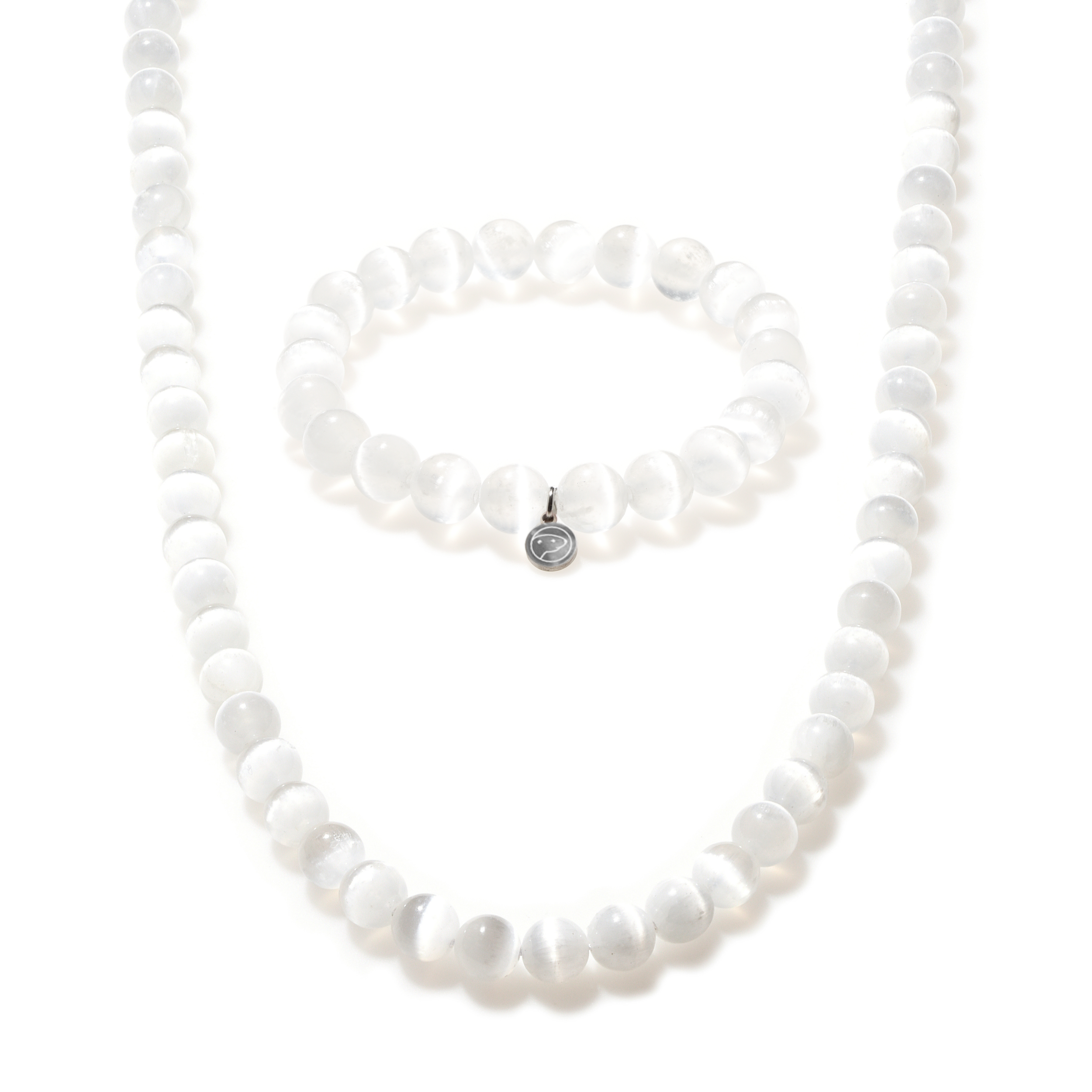 Beaded Selenite Bracelet made with AA grade natural crystal, featuring our signature otter medallion. Selenite is the cleansing stone. It clears negative energy, enhances awareness, and promotes clarity for both yourself and your surroundings.