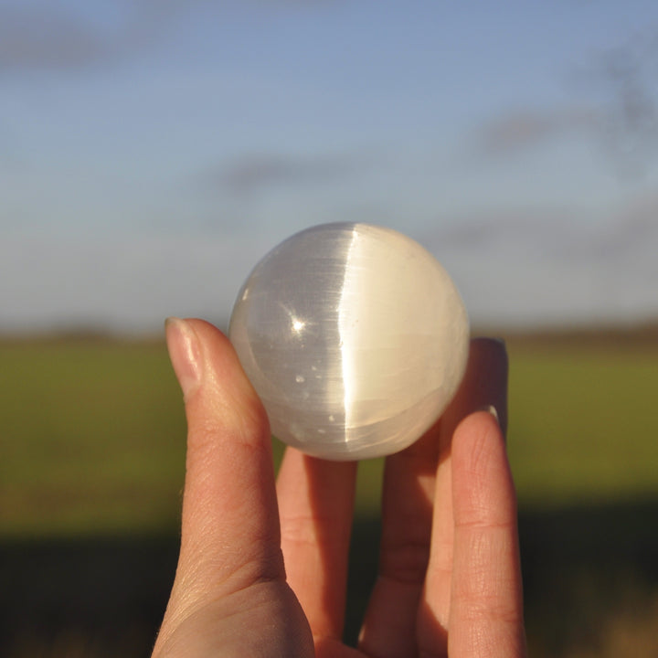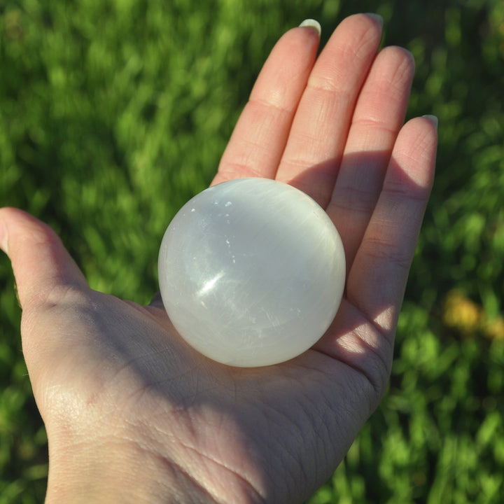 Selenite Sphere made with AA grade natural crystal. Selenite is the cleansing stone. It clears negative energy, enhances awareness, and promotes clarity for both yourself and your surroundings.