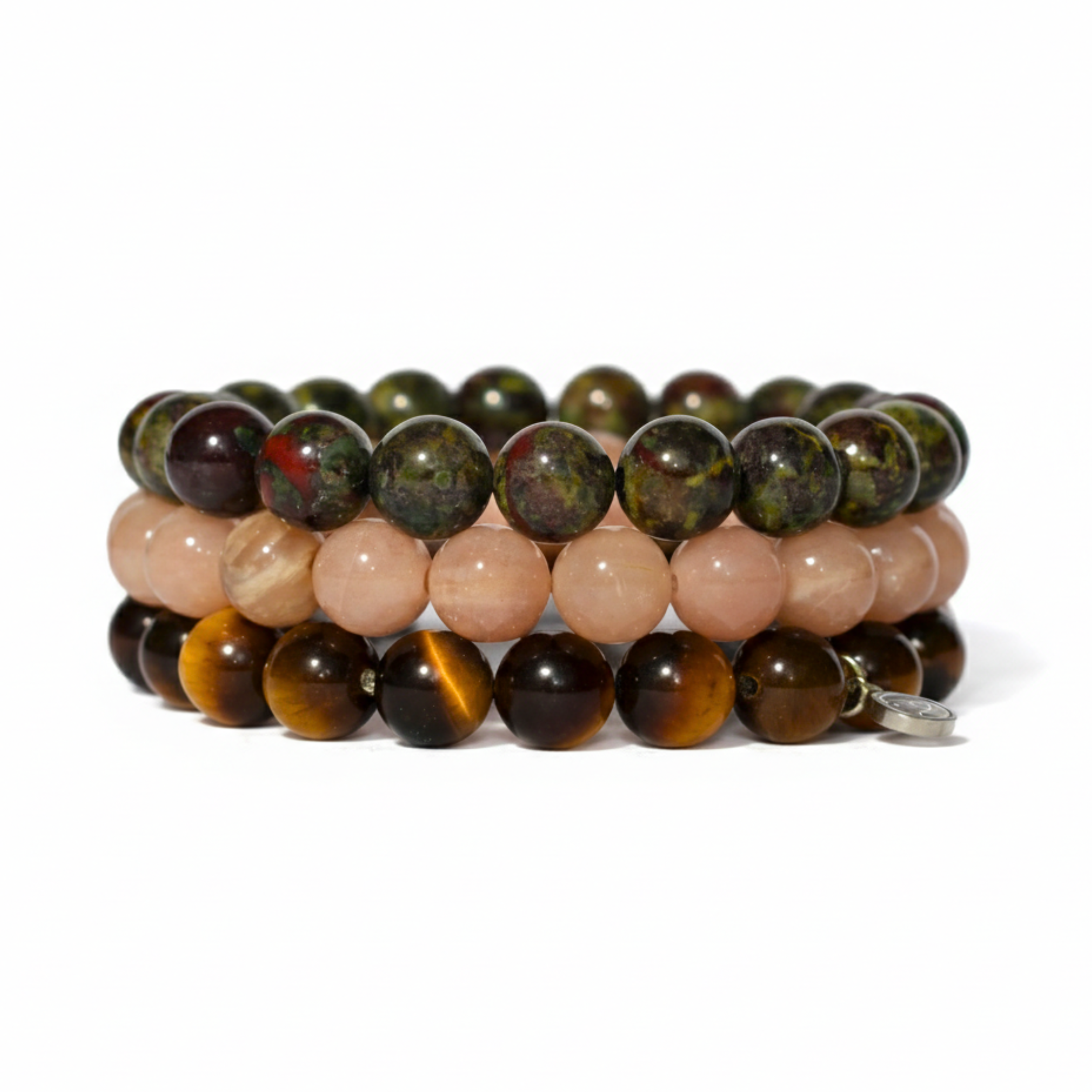 Created to awaken passion and connection, this set blends vitality with intimacy. Rose Quartz nurtures tenderness, Garnet fuels passion and devotion, while Red Jasper inspires confidence and desire.