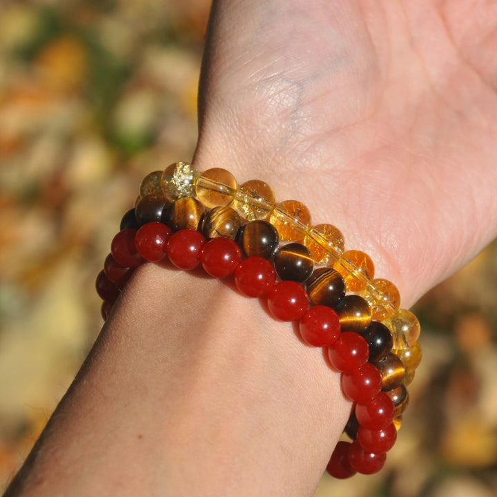 Crafted to honor gratitude, abundance, and inner warmth, this set blends confidence with optimism and creativity. Citrine radiates joy and prosperity, Tiger Eye grounds and empowers with courage, while Carnelian awakens passion and vitalit
