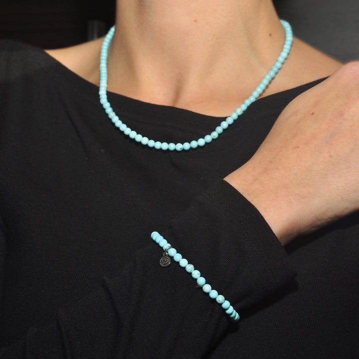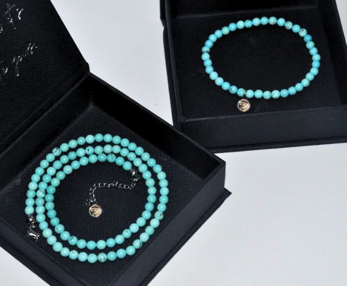 Meet the Turquoise Beaded Duo — a delicate two-piece set designed to connect you with the healing and protective energy of Turquoise. This set includes a beaded necklace and a matching bracelet, each crafted from AAA-grade Turquoise gemstones and featuring our signature otter medallion.